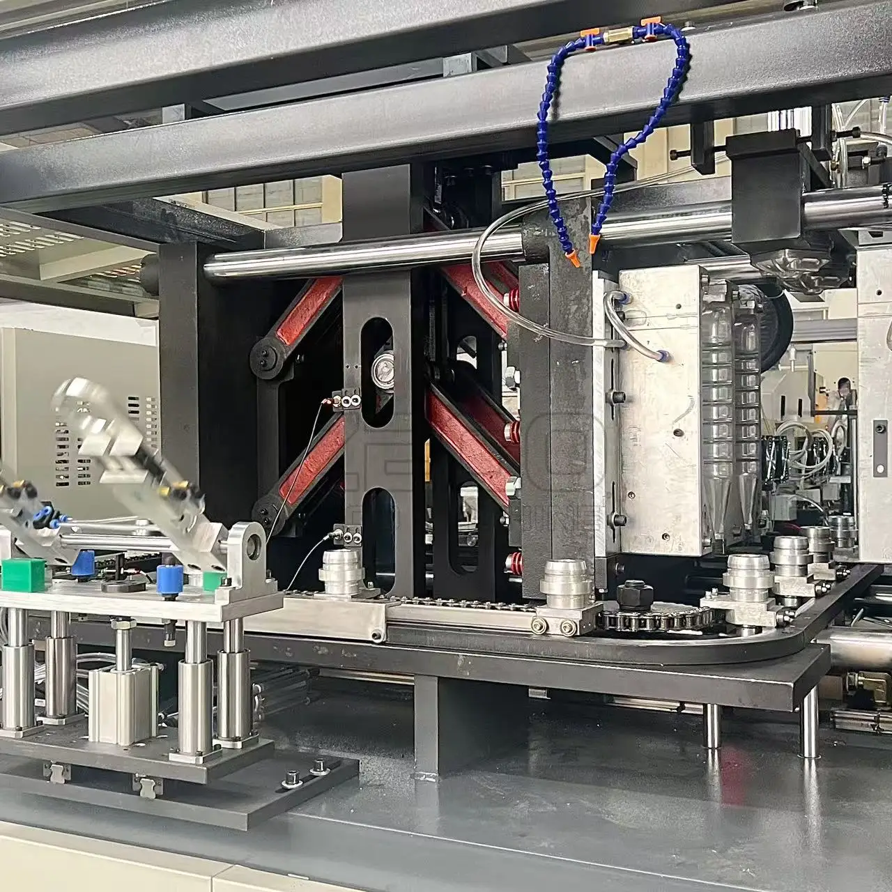 A Variable Pitch PET bottle blower is a high-speed, automated linear stretch-mold system whose preform feed is regulated by altering the gap between gripper and mold. By continuously adjusting this spacing, the machine can switch rapidly among different bottle formats—from small water bottles to large containers—cutting clamp time and raising overall output.
